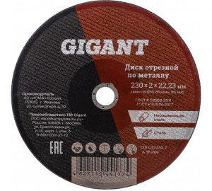 Диск шлифовальный по металлу (230х22.2х6 мм) Gigant СDI C1/230-6 (Россия)